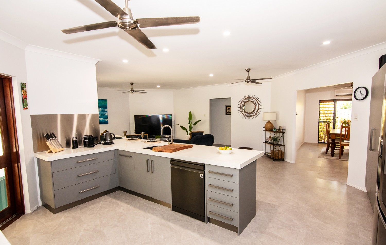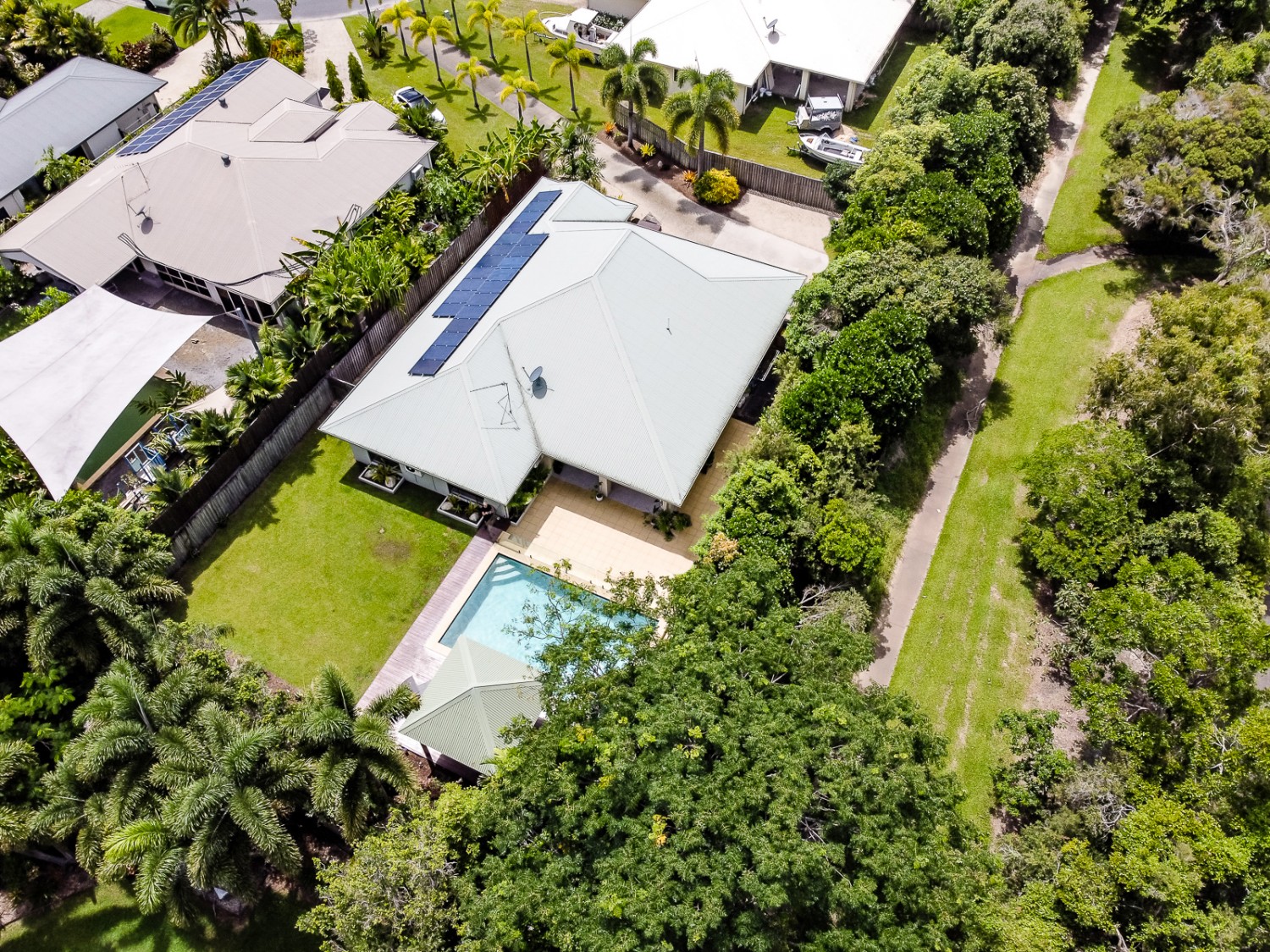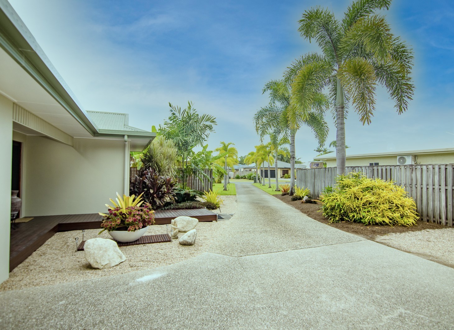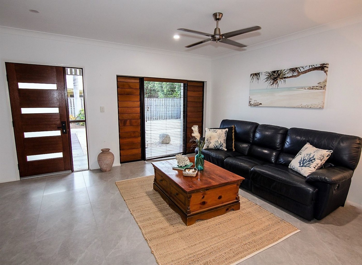 Discover this substantial and stylish Port Douglas home which benefits from a discreet and private location and a supersized residential block of land, well over 1,200m2. A foxtail palm lined driveway leads you to the fresh 4-bedroom 2-bathroom house with expansive indoor and outdoor entertaining areas, gorgeous swimming pool and backyard lawn for family fun.
