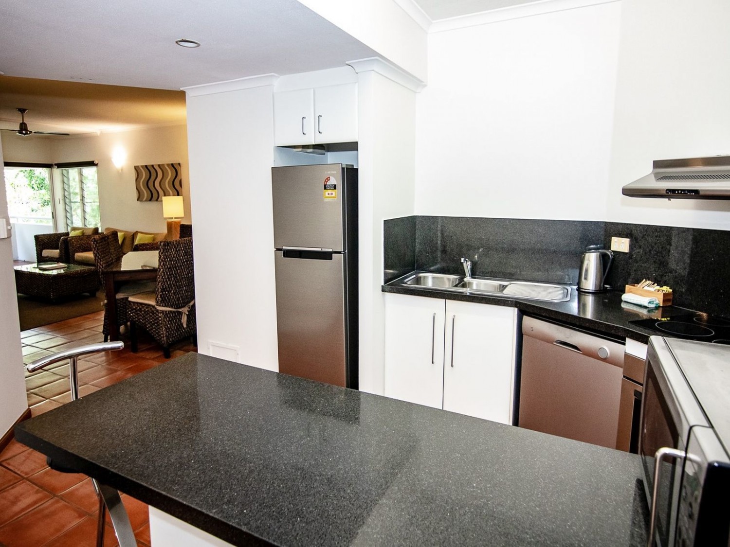 This supersized one-bedroom apartment is located in the established Beach Terraces Port Douglas complex, one block back from the patrolled area of Four Mile Beach, and easy walking distance to the shops and restaurants of Macrossan Street and the Marina, Port Douglas's "golden triangle".