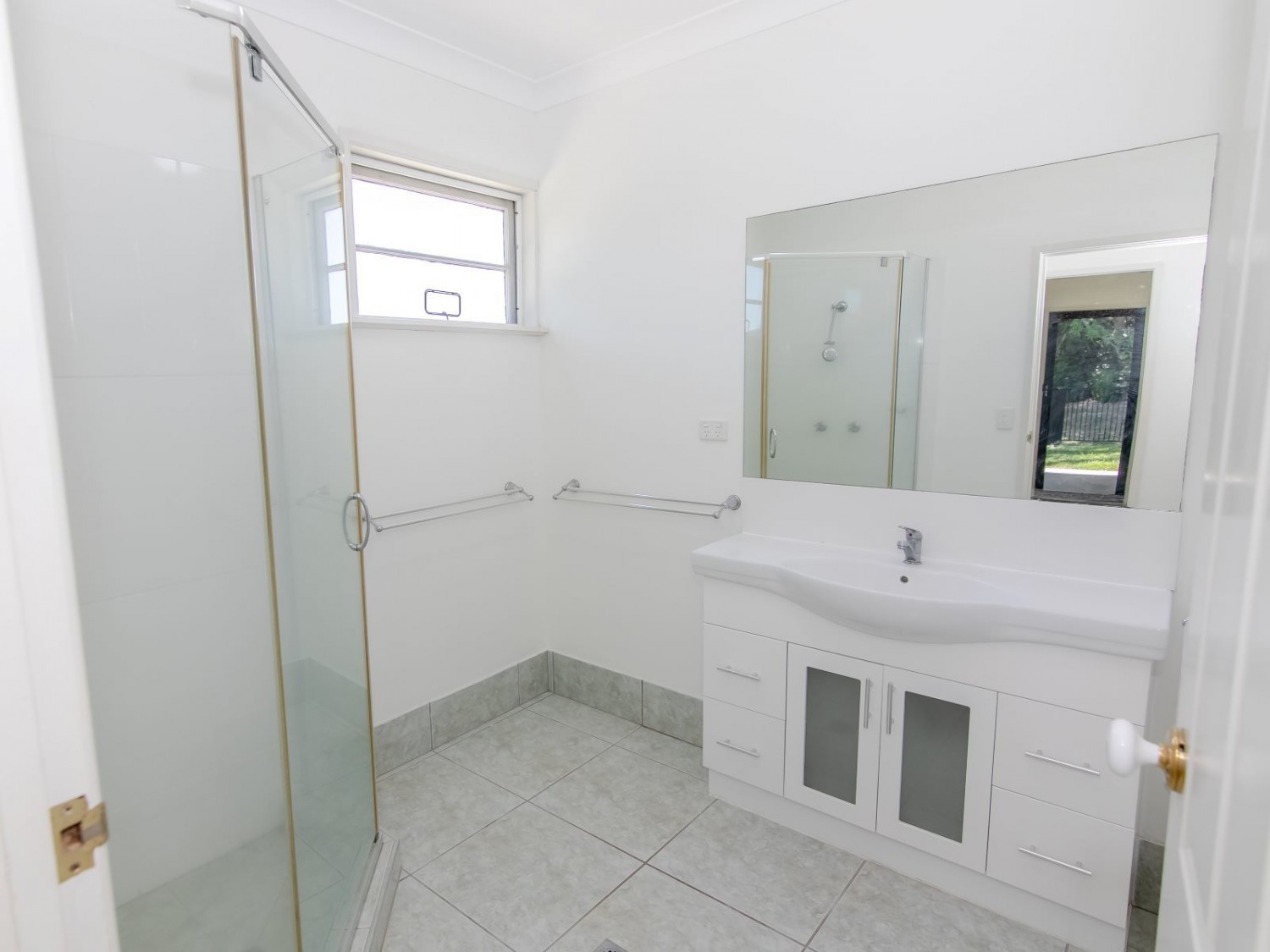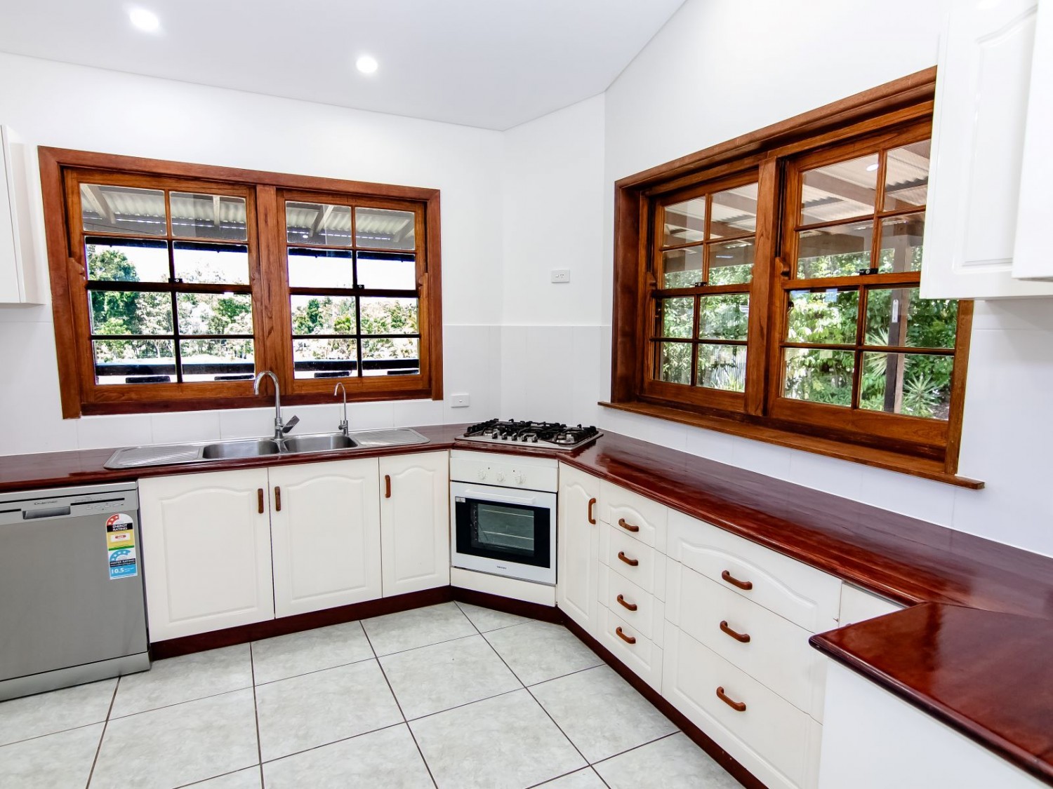 This property is tranquil and private, situated well back from Highland Drive, a road known for its quiet and secluded nature. A palm-tree lined drive leads to the delightful 3-bedroom, 2-bathroom house. High ceilings and use of timber create a welcoming ambiance as you enter. The kitchen is very spacious, with timber benches, generous cupboard space, and a servery to the outdoor living area; included are a dishwasher, gas cooktop and electric stove. There's an indoor timber island dining bench, and the open plan lounge area is airy and comfortable, with a fat-boy fireplace and feature brick wall. The main bedroom has new split system airconditioning and an ensuite, as well as BIRs, and the other two bedrooms are large and also have BIRs. Overhead fans throughout, the laundry is inside, and there's a fenced area to one side of the house, great for small children or pets.