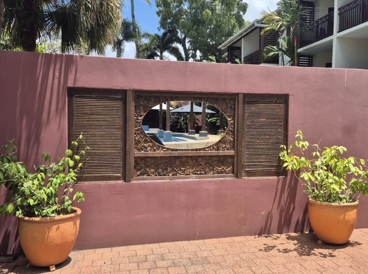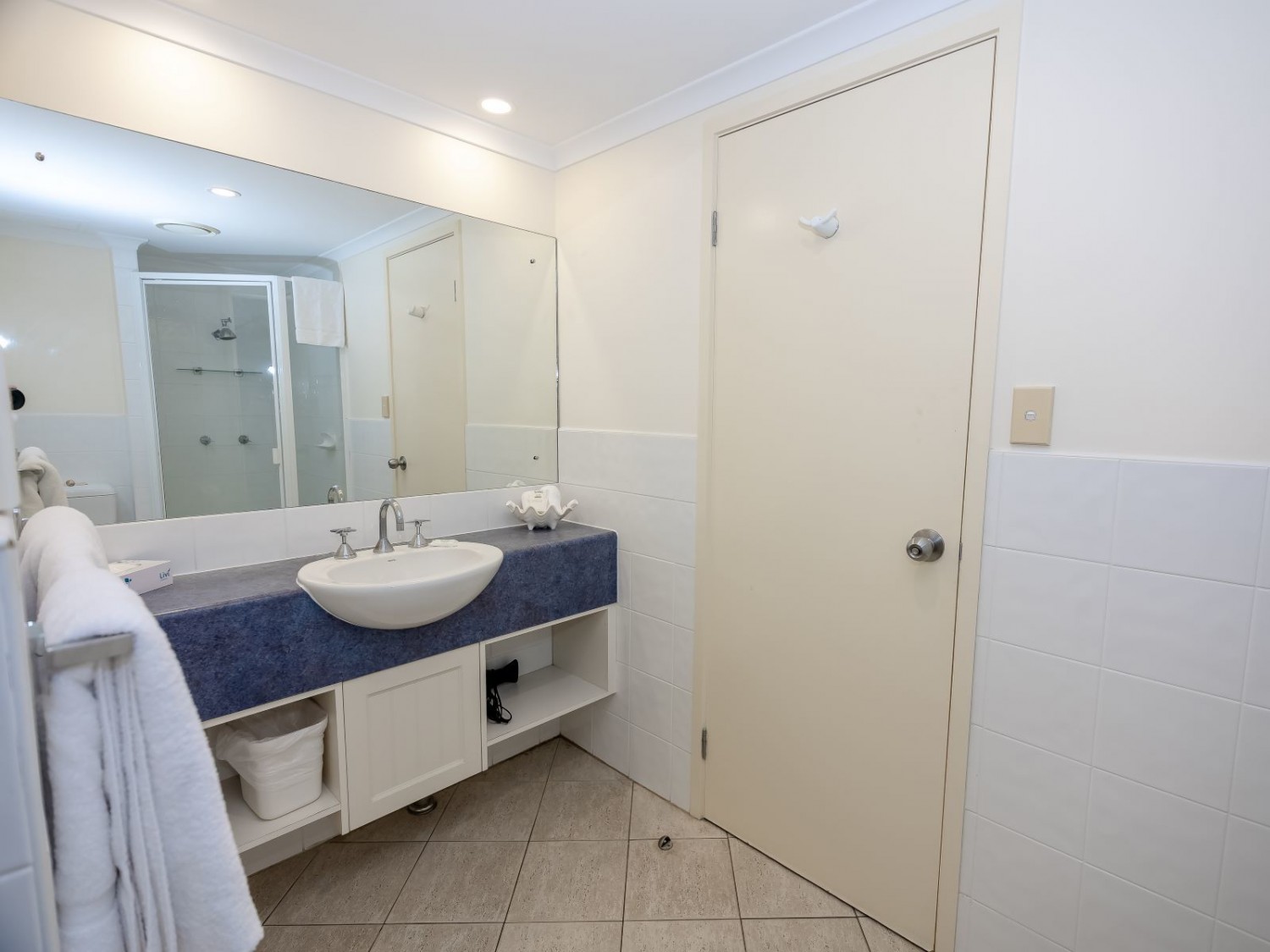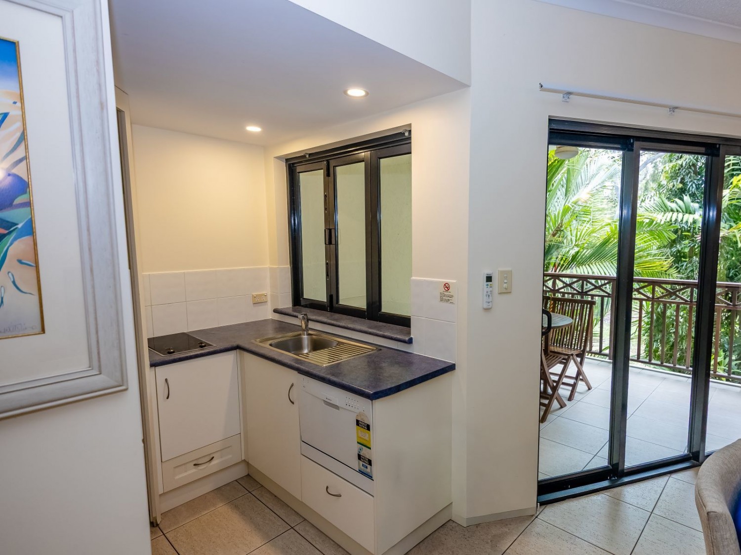 The comfortable apartment has a desirable and tranquil position within the resort, on the first floor overlooking a quiet reserve, with a balcony from which to relax and get a real feel of the tropics. Spot the butterflies and birdlife! Great use of space, lounge/dining, practical kitchen area. Looking very stylish after a refurbishment in November 2025. The queen bedroom has an ensuite shower room with additional entrance from the hall, convenient if you are coming from the beach or pool. For year-round comfort, there is split system airconditioning and overhead fans,