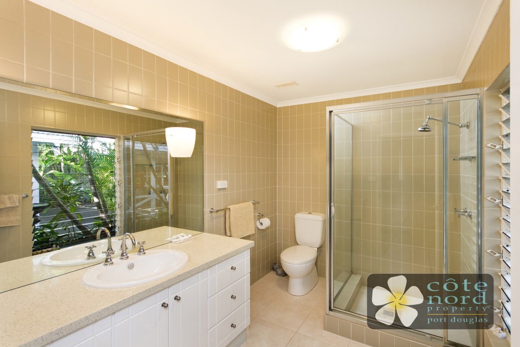 This is a very special Port Douglas property! The view from the spacious open plan lounge dining room, across the pool, lake and beyond is stunning! The L-shaped block means that you can have spectacular private vistas, but noone can see you, and the discreet lengthy driveway with security gate and intercom ensures your privacy, and peace and beauty surround you.